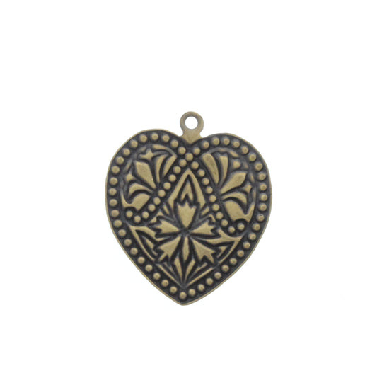 Vintage Brass Metal Heart Charm, PK/6