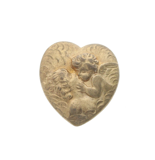 Vintage Brass Metal Heart Stamping with Flower, PK/6