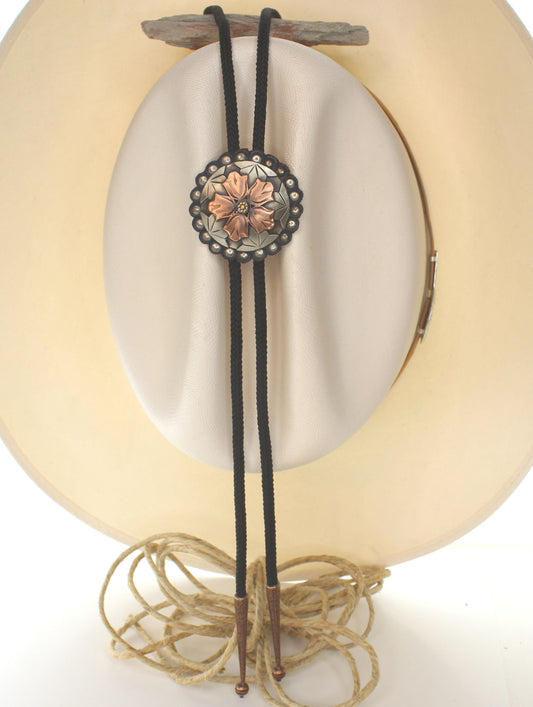 50mm Southwestern Cactus Bolo Tie, with brown cord, made in USA, each