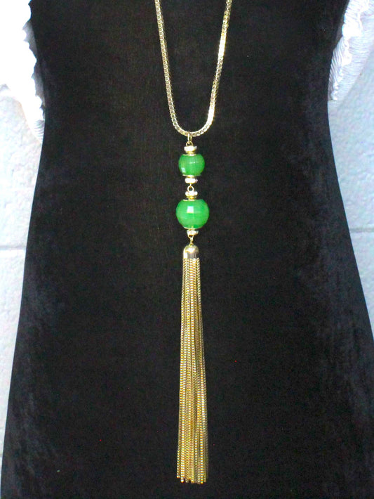 Verdant Glow Tassel Necklace, 31" Gold Chain, made in USA, each
