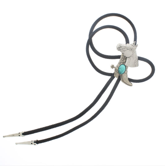 60mm x 45mm Horse & Cowboy Boot Bolo Tie, Turquoise, Black, Red or Brown Stone, made in USA, each