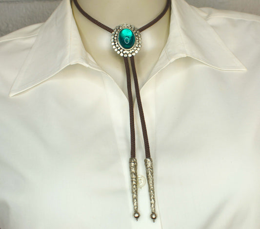 Sage Sovereign: Emerald Stone Bolo Tie, Made in USA, 35.3mm x 41.9mm