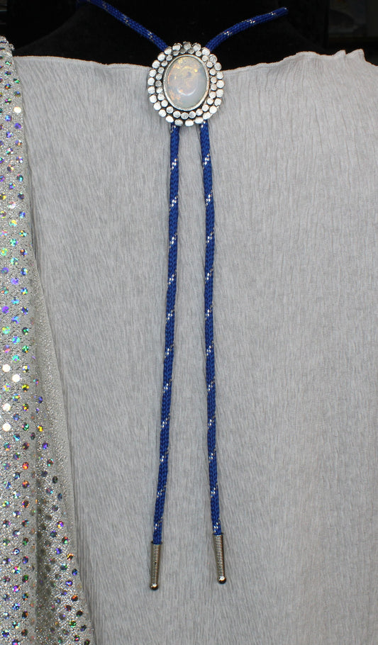 Blue Clarity: Gem Bloom & Sky Cord Bolo Tie, Made in USA, 35.9mm x 47mm