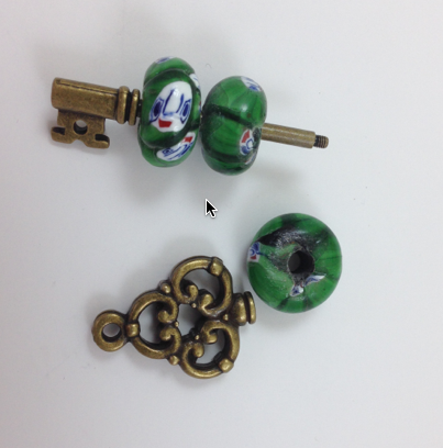 3 inch Key Charm Pendant, bead holder, Bronze Antique Gold, each