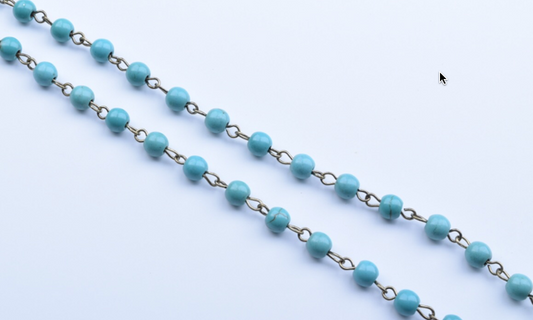 6mm Turquoise Glass Beaded link Chain, Rosary chain, by the foot