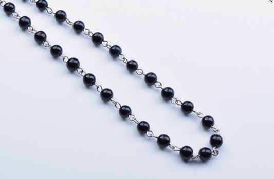 6mm Black Beaded linked Chain, Rosary chain, cut glass, by the foot