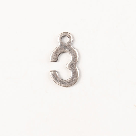 9mm #3 CHARM, Antique Gold, Classic Silver Metal Stamping, pk/6