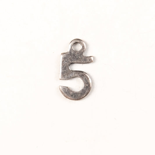 9mm #5 CHARM, Antique Gold, Classic Silver Metal Stamping, pk/6