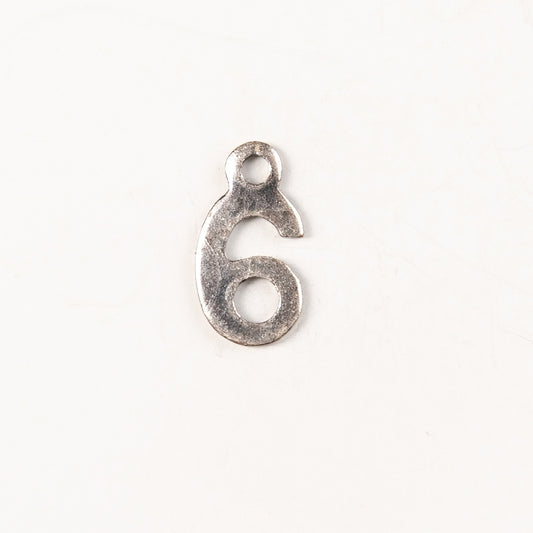 9mm #6 CHARM, Antique Gold, Classic Silver Metal Stamping, pack of 6