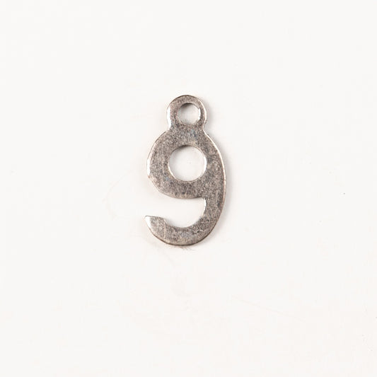 9mm #9 CHARM, Antique Gold, Classic Silver Metal Stamping, pk/6