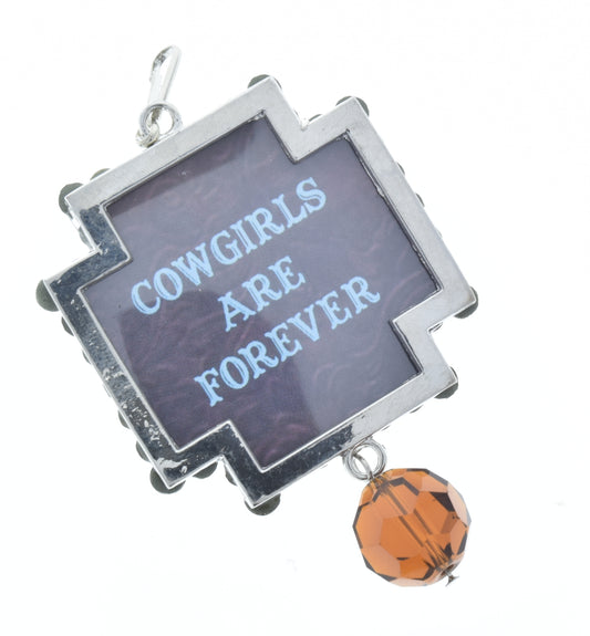White Crystal, Cross shape Vintage Cowgirl Art Pendant, Copper, 3 ea