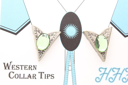 Western Collar Tips with Peridot Green Stones (resin) Made in the USA, Sold in a pair (02601-10)