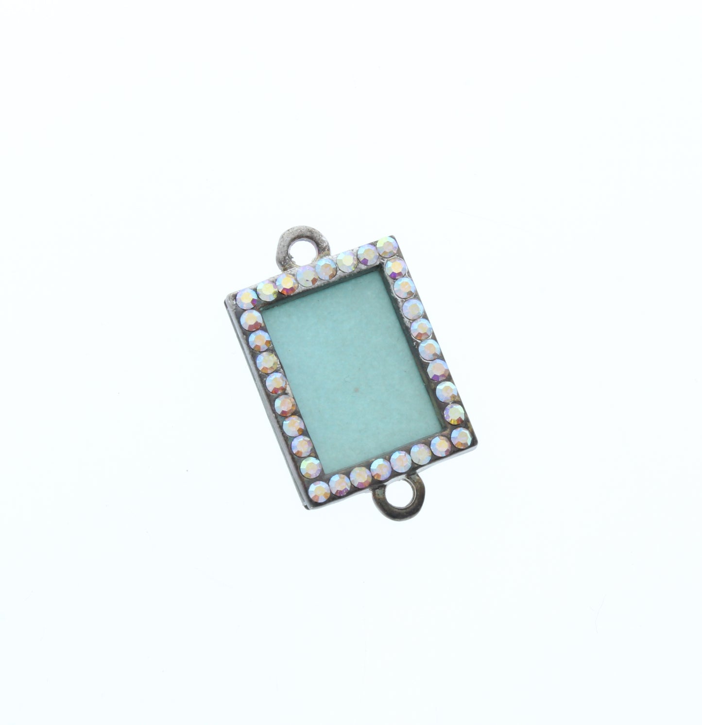 Two Sided Pendant Frame(double loops), 1" x 3/4", Silver Finish w/2mm AB Austrian Crystals, 1 each.