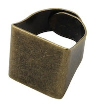 20mm x 19mm Ring Base, Vintage bronze, package of 6. This is a solid band of metal that can be adjusted for comfort easily. It is sturdy to mount larger pieces on with no restrictive rim. Large cabochons, stones, Brass with silver finish. Ring band: 17 mm adjustable.