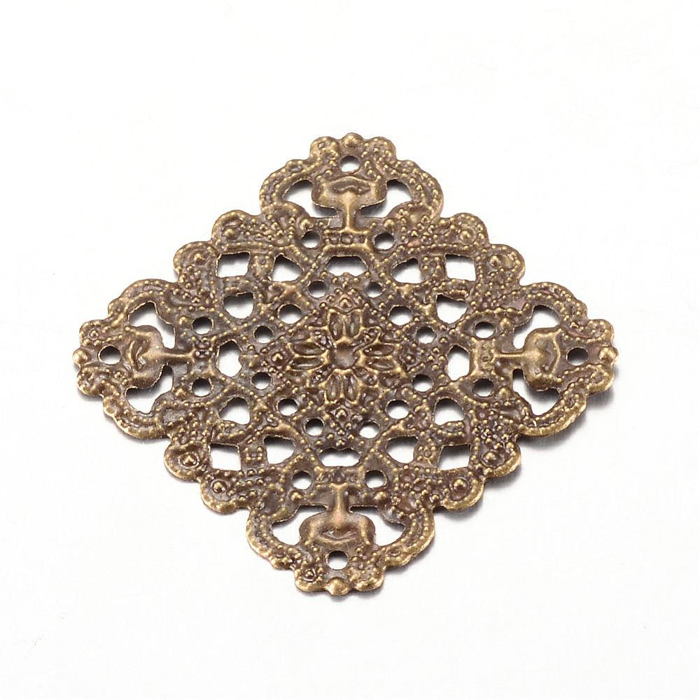 Iron Filigree Joiners, Computer Beaded Patch, Rhombus, Antique Bronze.