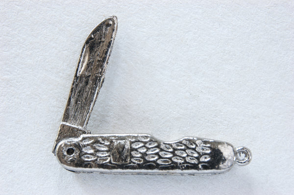 34mm Silver Folding Pocket Knife Charm, w/loop pk/6