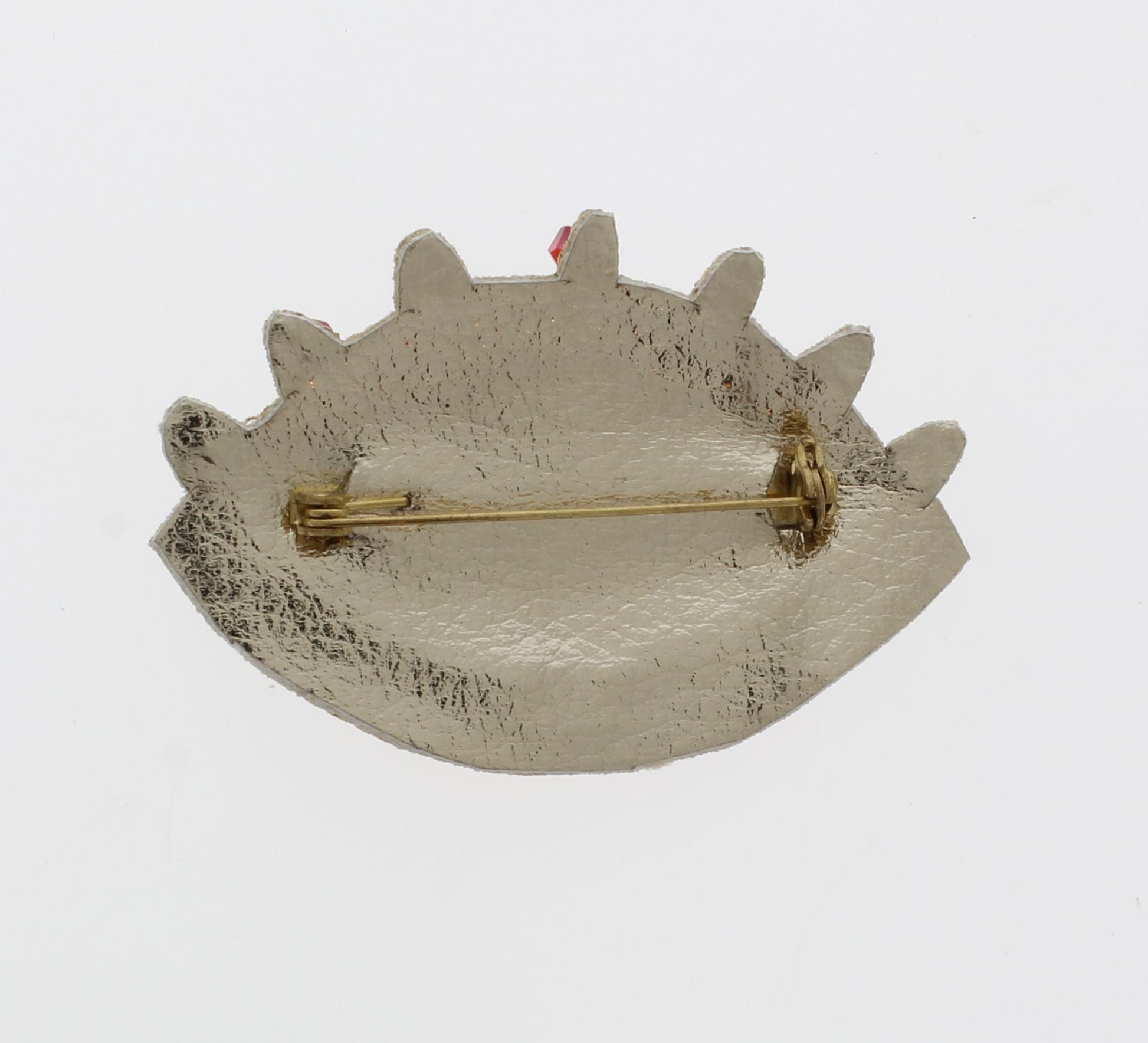 Bring bold style and symbolic meaning to your look with this handmade embroidered eye pin. Featuring intricate beadwork in white, gold, black, and red, this striking accessory is inspired by the protective “evil eye” motif. Detailed with shimmering accents and gem-like lashes, it’s both fashionable and meaningful.