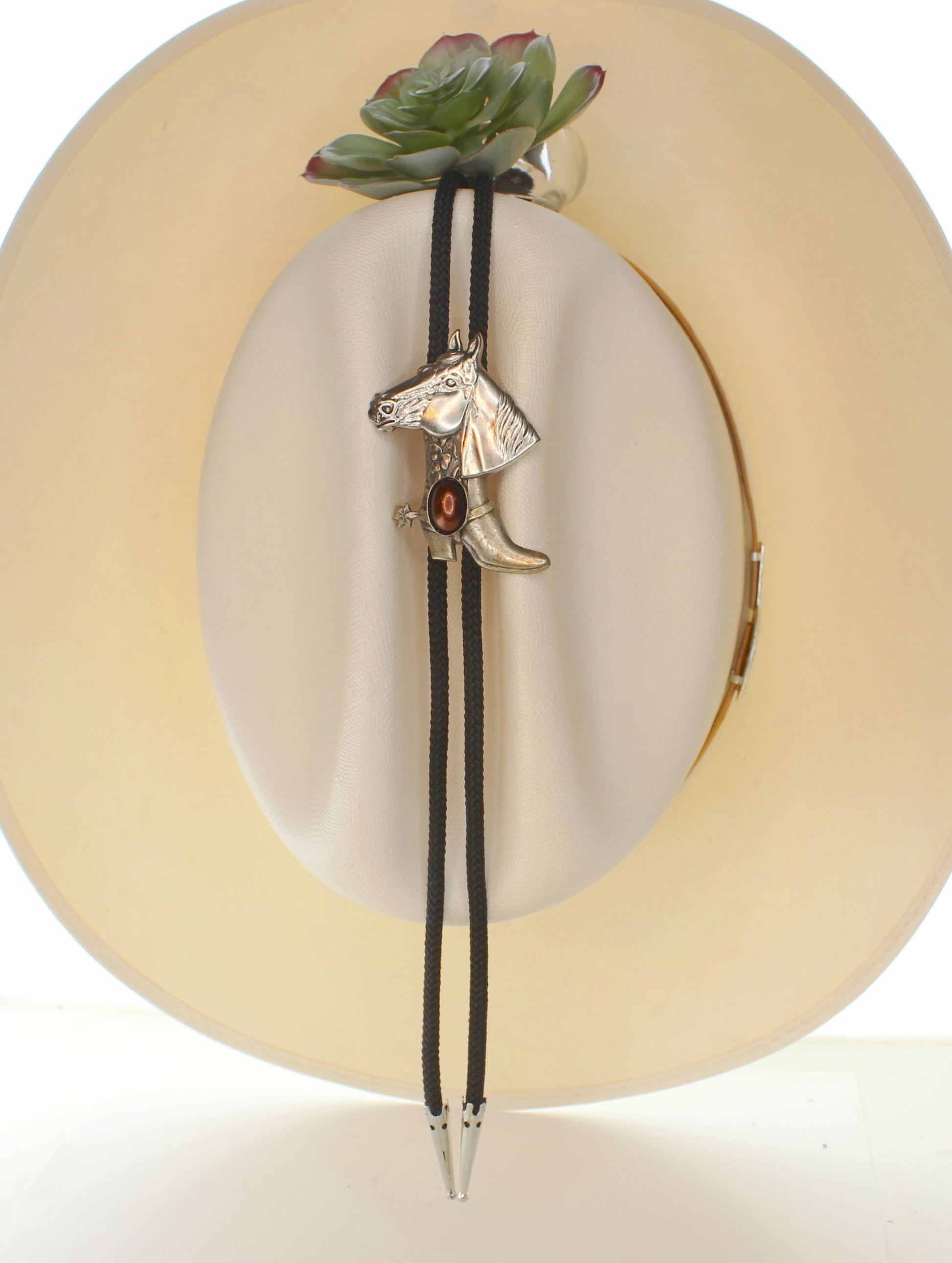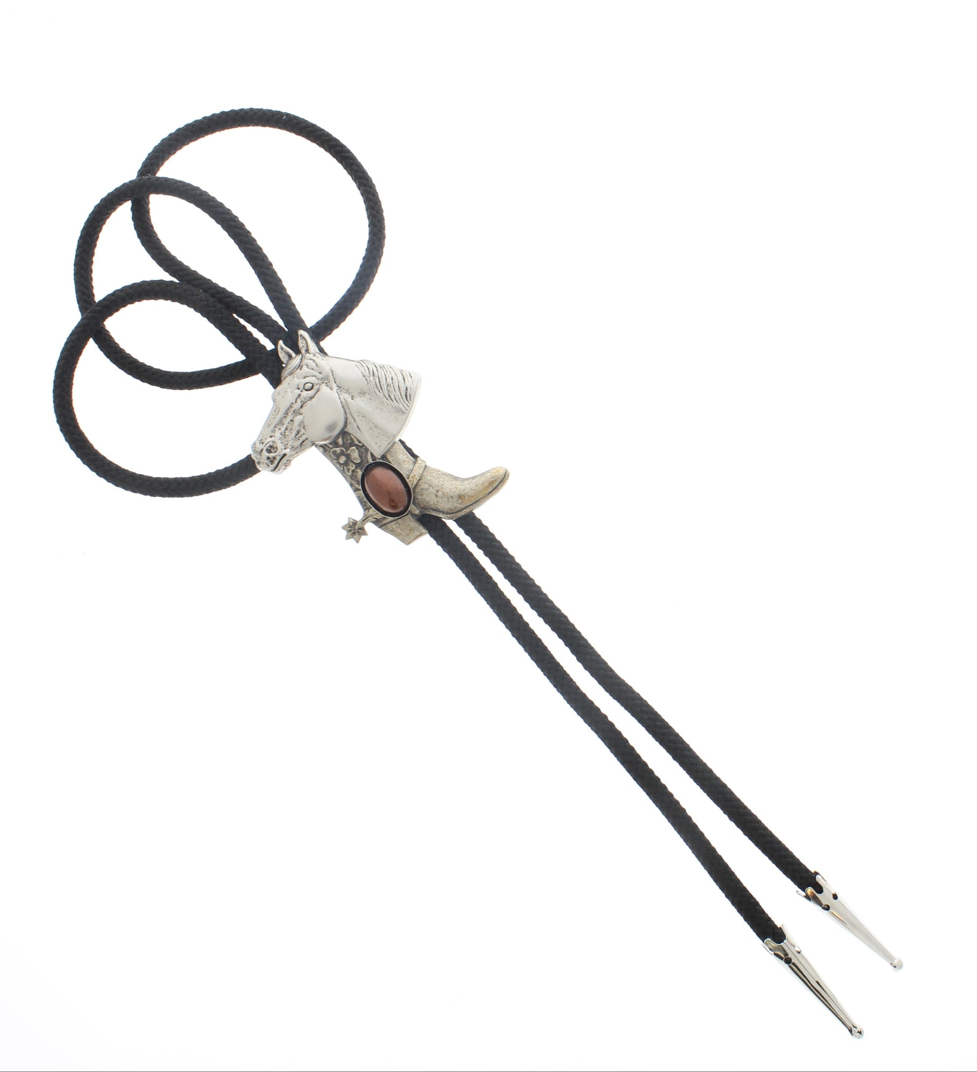 60mm x 45mm Horse & Cowboy Boot Bolo Tie, Turquoise, Black, Red or Brown Stone, made in USA, each