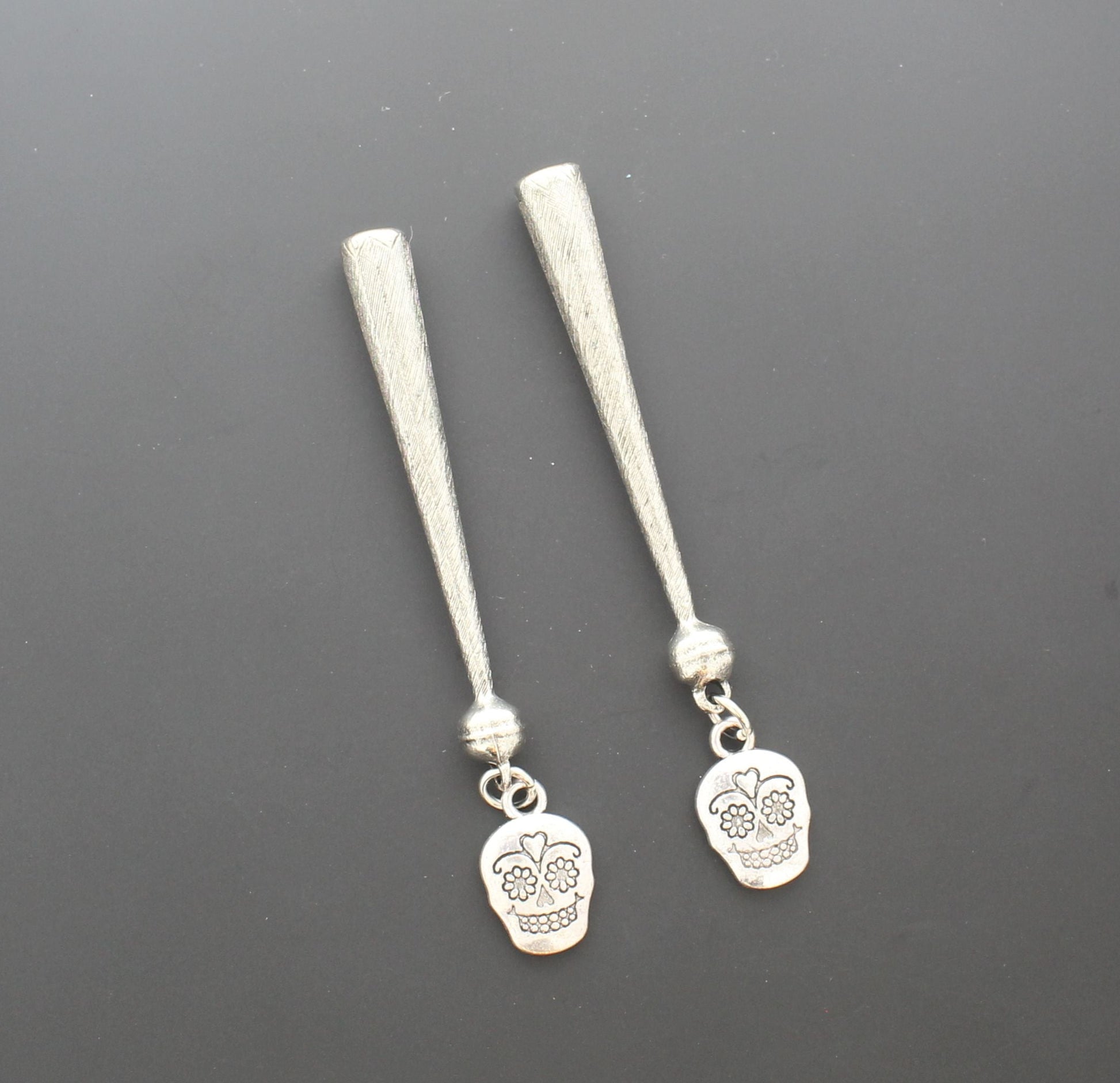 Add a unique finishing touch to your bolo tie with these silver-tone sugar skull bolo tips. Featuring detailed Day of the Dead–inspired skull charms, these tips bring a bold and stylish twist to traditional Western wear.