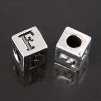 8mm Alphabet Block Beads, F, silver metal cast, pack of 12