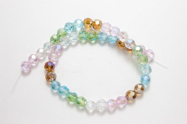 8mm Crystal Multi Color Faceted Round Beads, 13" per strand