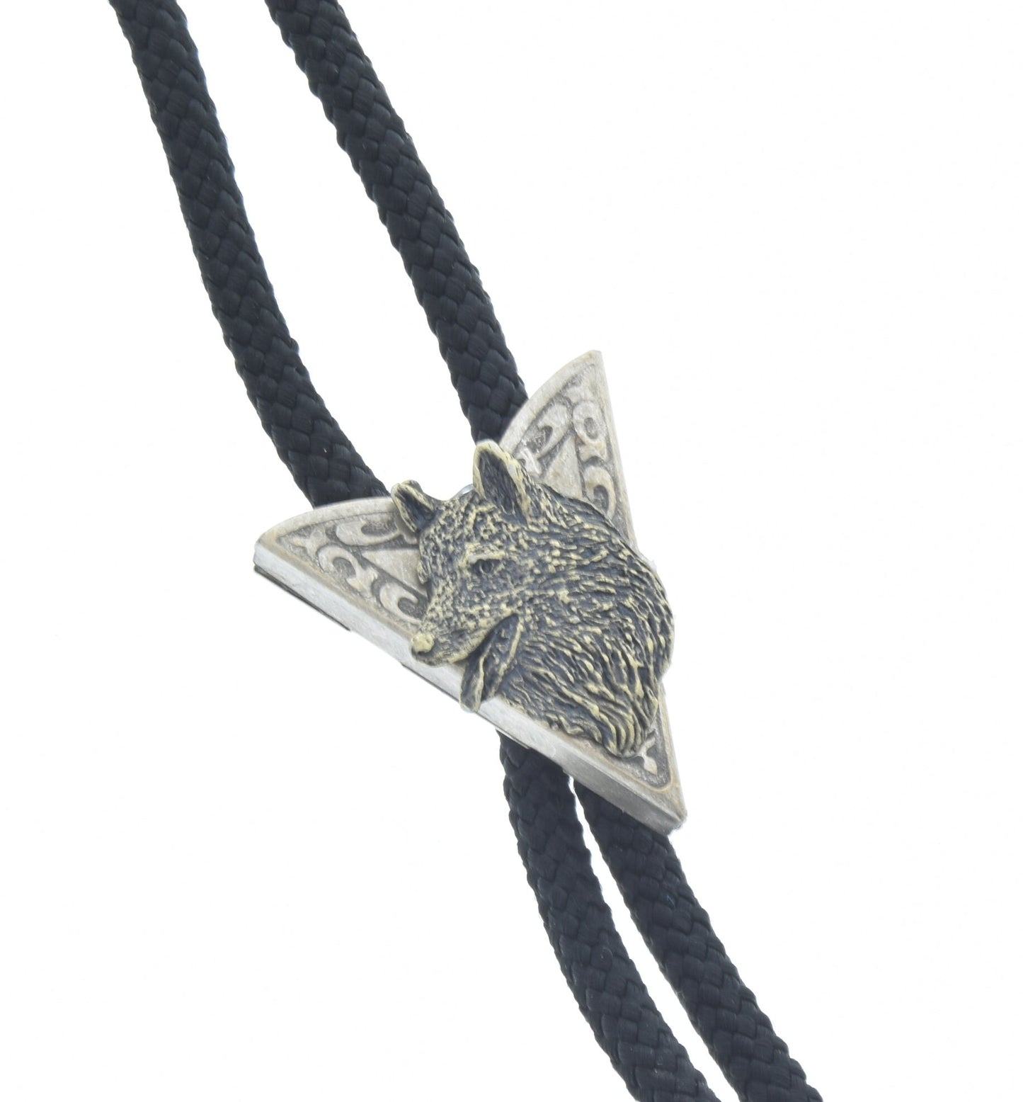 Bolo Tie with Dog Head or Wolf Head with tips, antique silver, made in USA, each