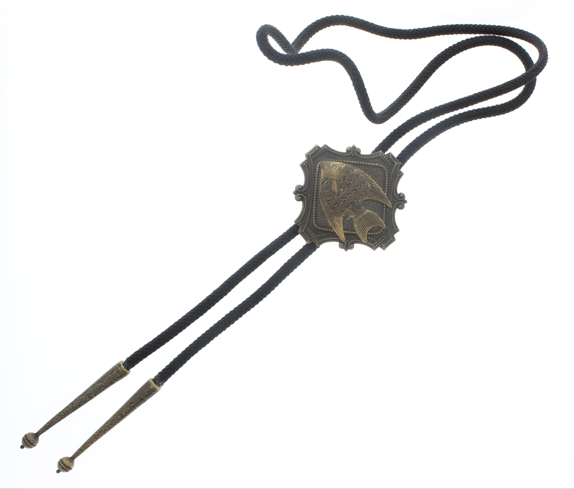 Brass Tide Bolo Tie – Angelfish Emblem in Ornate Frame, Made in USA, 58mm x 58mm
