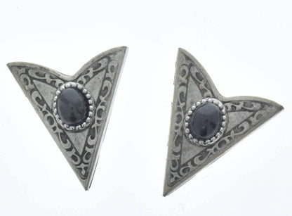 Western Collar Tip, black stones , Antiqued Silver, sold 2 each per sale, Made in USA