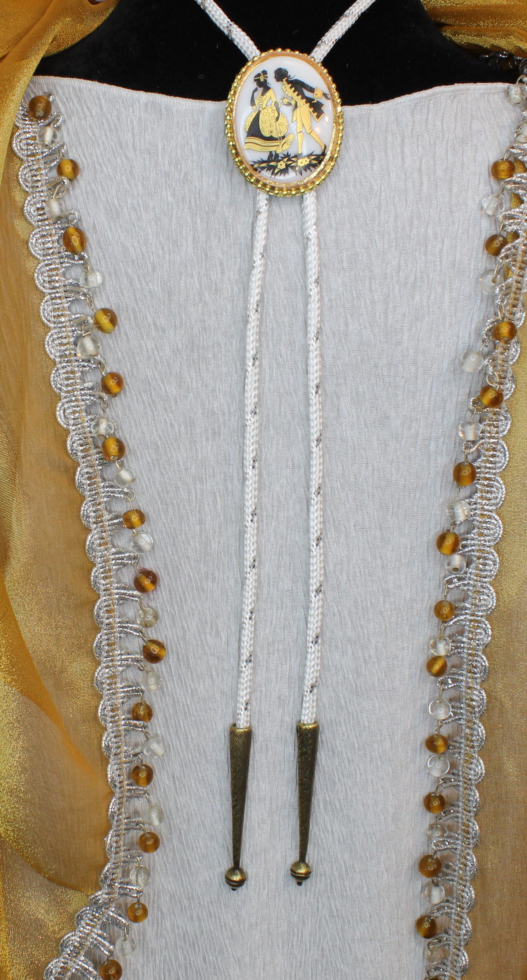Desert Serenade: Courtship Silhouette & Ivory Cord Bolo Tie, Made in USA, 36.4mm x 46.8mm