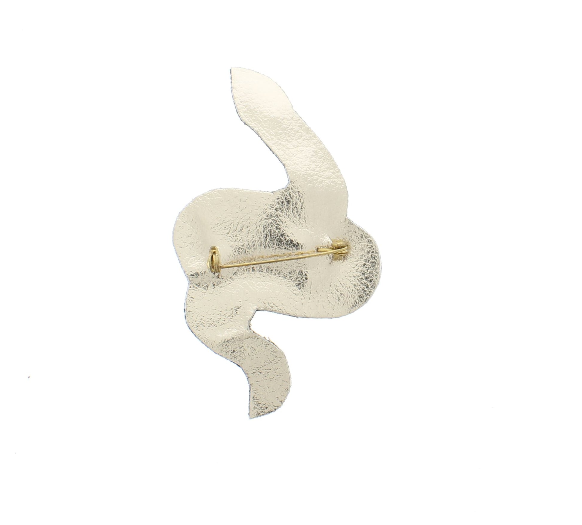This elegant black sequin snake pin winds with subtle power, featuring shimmering gold and white bead stripes along its body. At its head glows an ember-colored crystal, adding a fiery focal point to its sleek design. A bold, mystical accessory for those who like their style with a hint of enchantment.