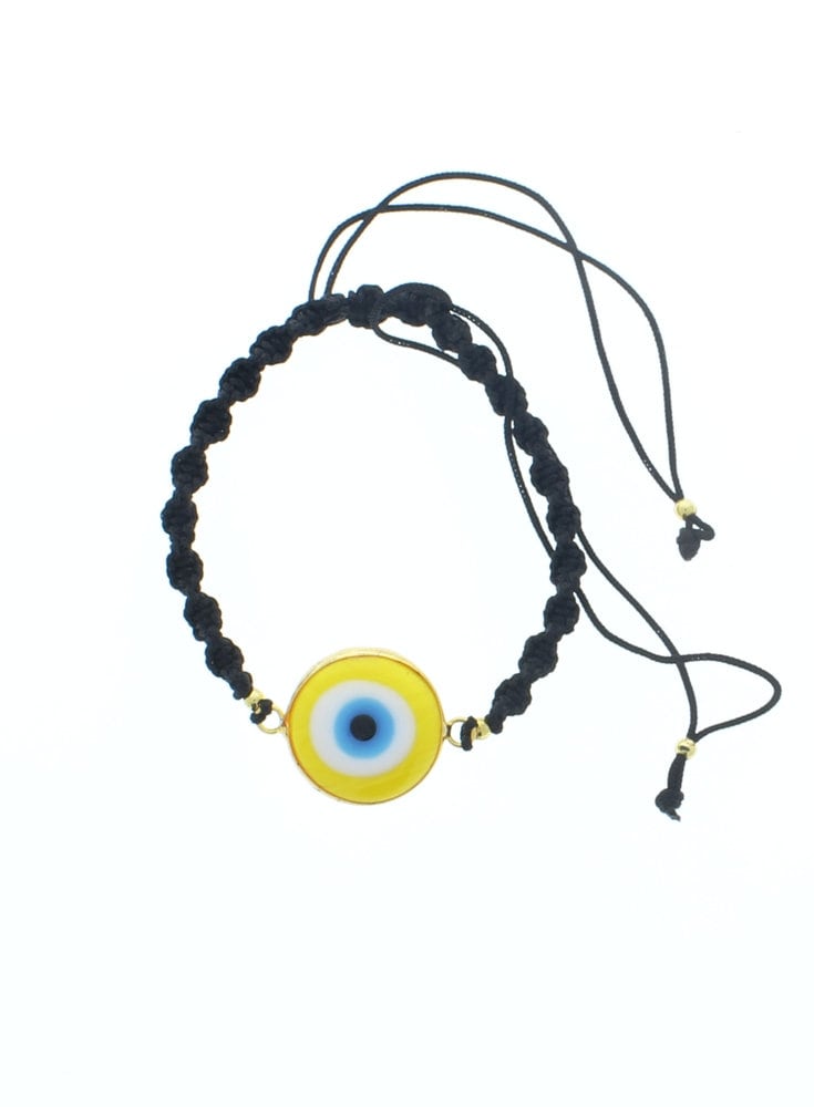Evil eye, yellow glass, macrame bracelet, sold by each