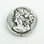 Greek Roman Goddess Cameo Face Coin Bead, Greco Roman, 30mm Round, Antique Silver, double sided, pack of 6