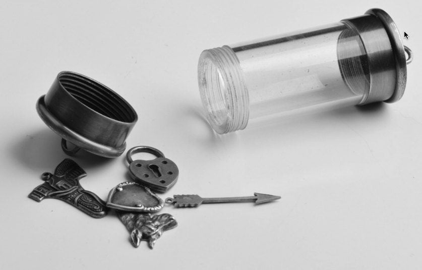HHH Jewelry Supply Store Memory Capsule Pendant, 2 1/3", J413S, Silver finish with Plexi Glass tube, Each