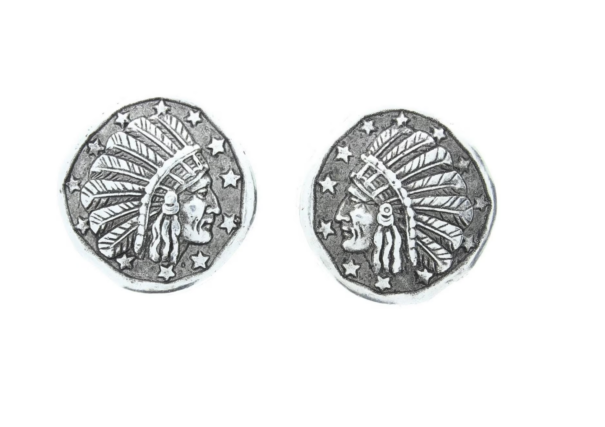 Native American Indian Chief Head Coin Medallion Beads, 30mm x 8mm, Antique silver or gold, Pack of 6