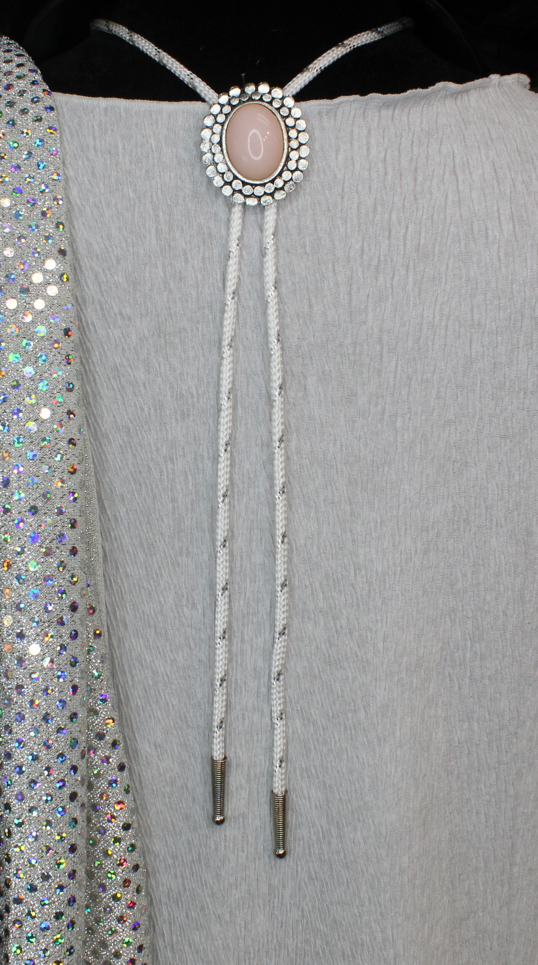 Prairie Rose: Blush Stone & White Cord Bolo Tie