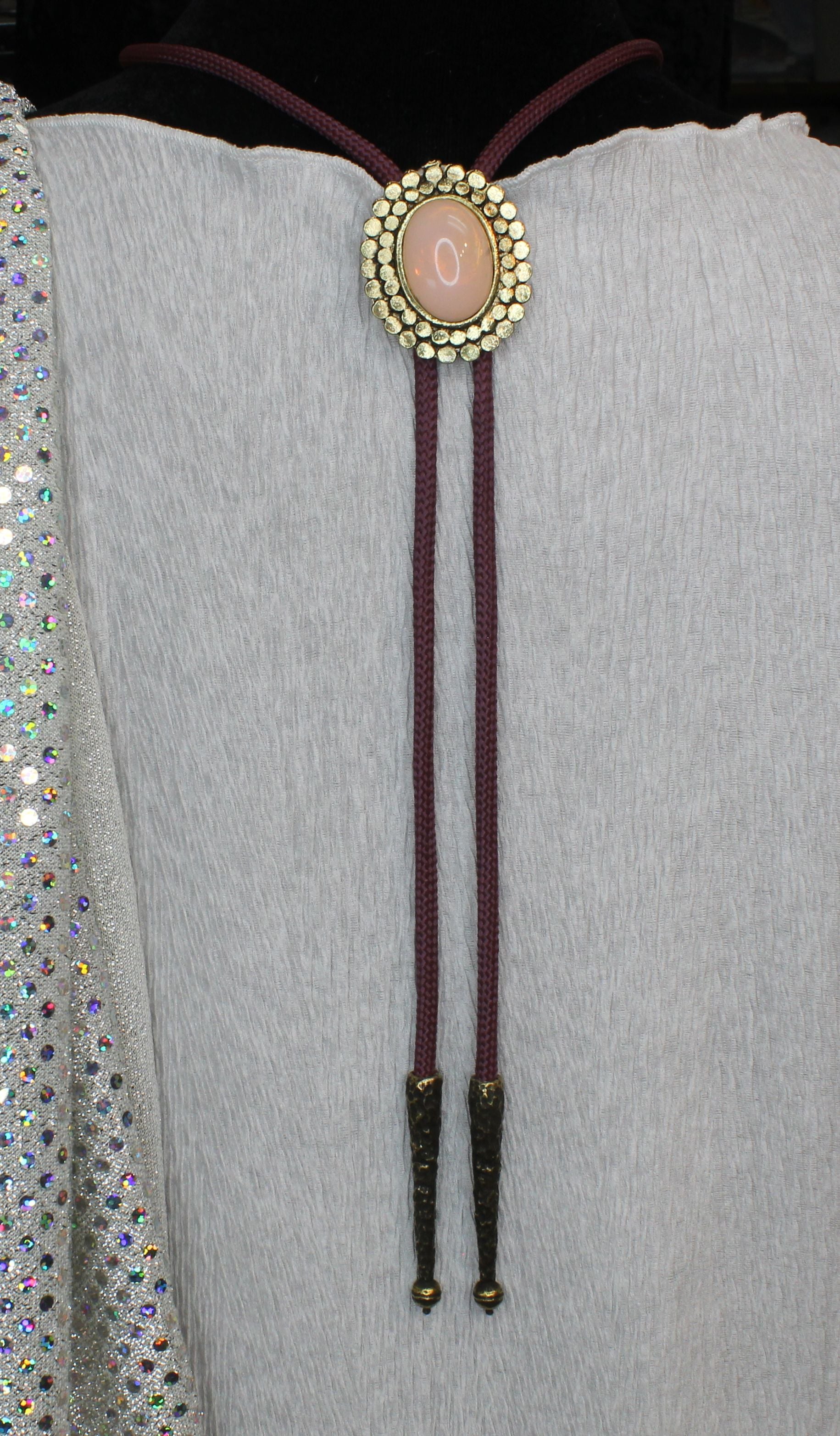 Rose of the Mesa: Blush Stone Bolo Tie with mahogany cord, Made in USA, 34.8mm x 42mm