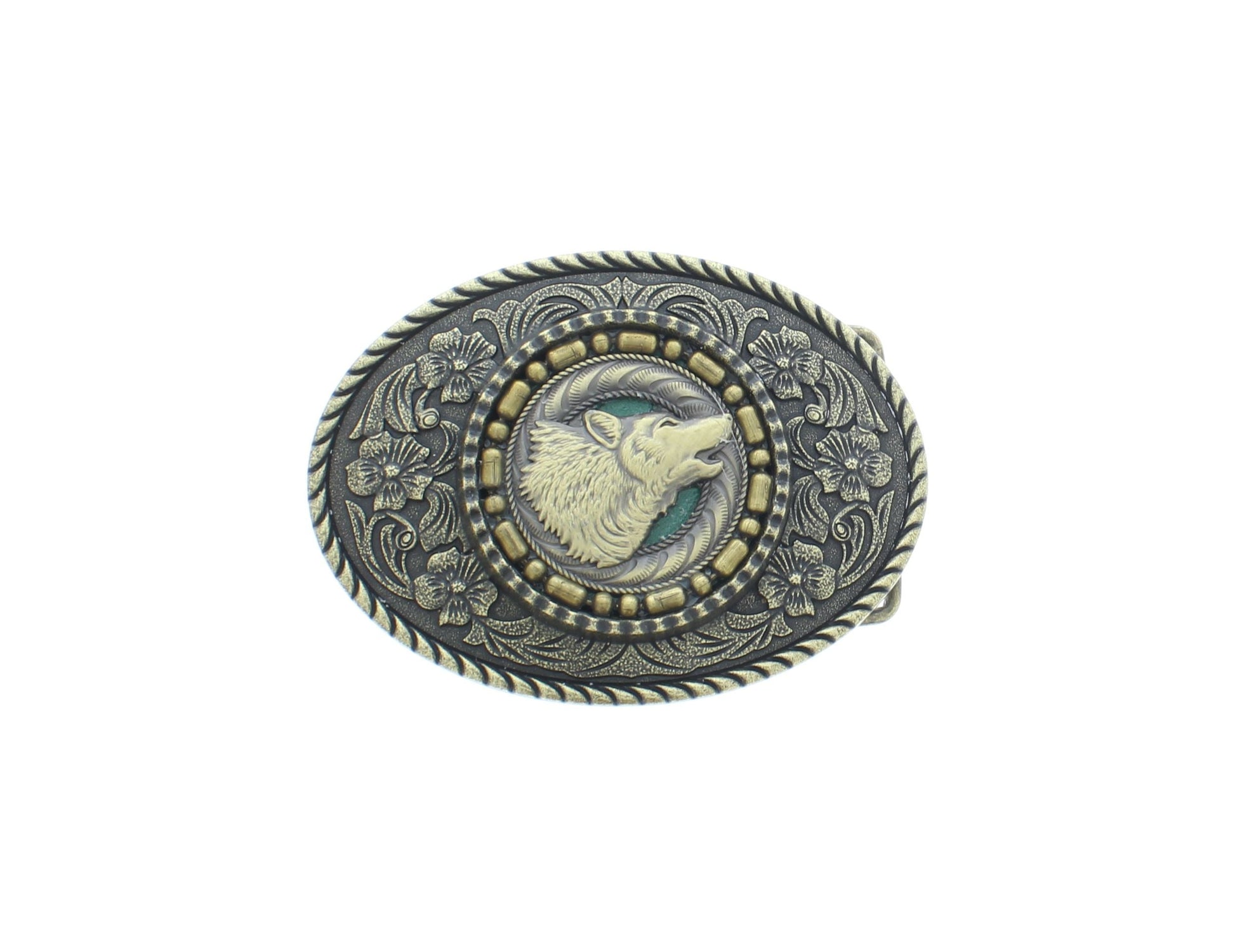 This handcrafted belt buckle captures the spirit of the wild with a detailed wolf head centerpiece. The oval frame is adorned with floral and rope-style accents, giving it a timeless western feel. Whether you're hitting the trail or making a statement in town, this buckle adds fierce personality to any outfit. Ideal for outdoor enthusiasts, western wear fans, or collectors of animal-themed accessories.