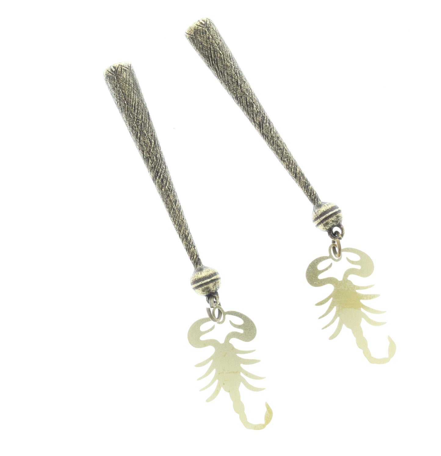 Scorpion bolo tips , brass , Made in USA of zinc, Set of 2/ 1 Pair