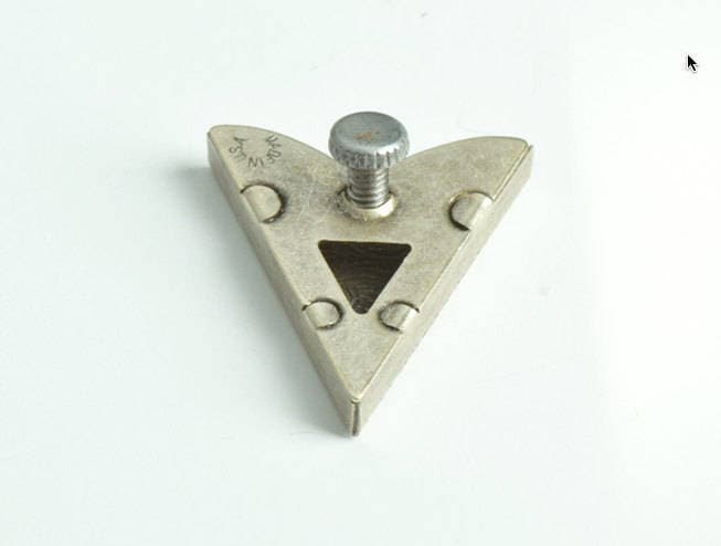 plated antique silver, screw attachment on rear, Dimensions: 1 3/8in h x 1 1/4in w, comes with attaching screws