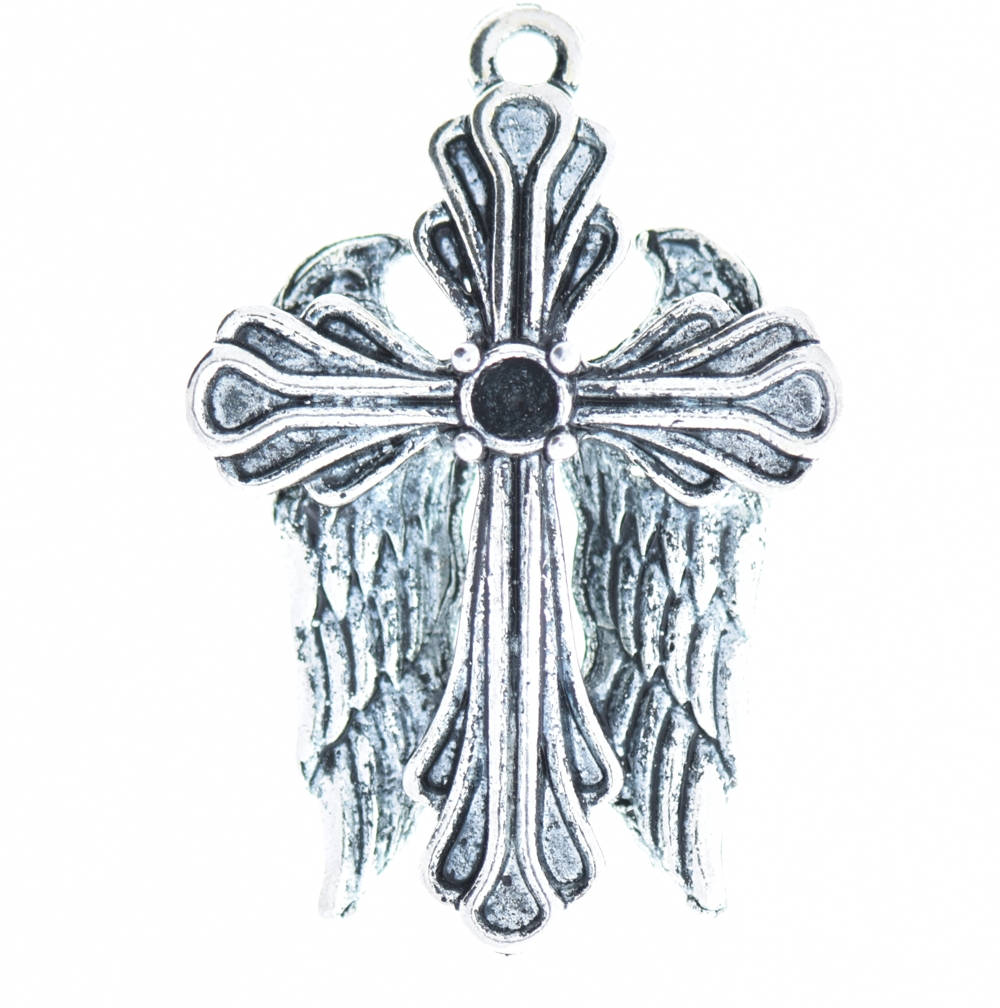 HHH Jewelry Supply Store Wing Pendant with cross, 41mm double touching wing, Pack of 3